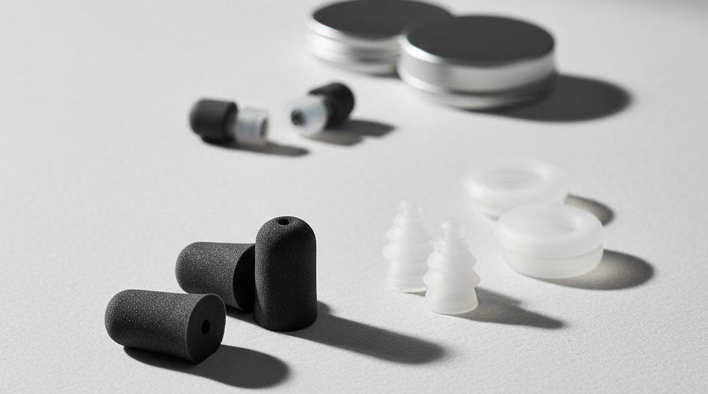 Putų kamštukai (Foam): Tai populiariausias ir dažnai pigiausias pasirinkimas. Jie susispaudžia, įsistato į ausį ir išsiplėtę idealiai užpildo ausies kanalą. Puikiai tinka maksimaliai garso izoliacijai, tačiau dažniausiai yra vienkartiniai ir gali kaupti bakterijas.